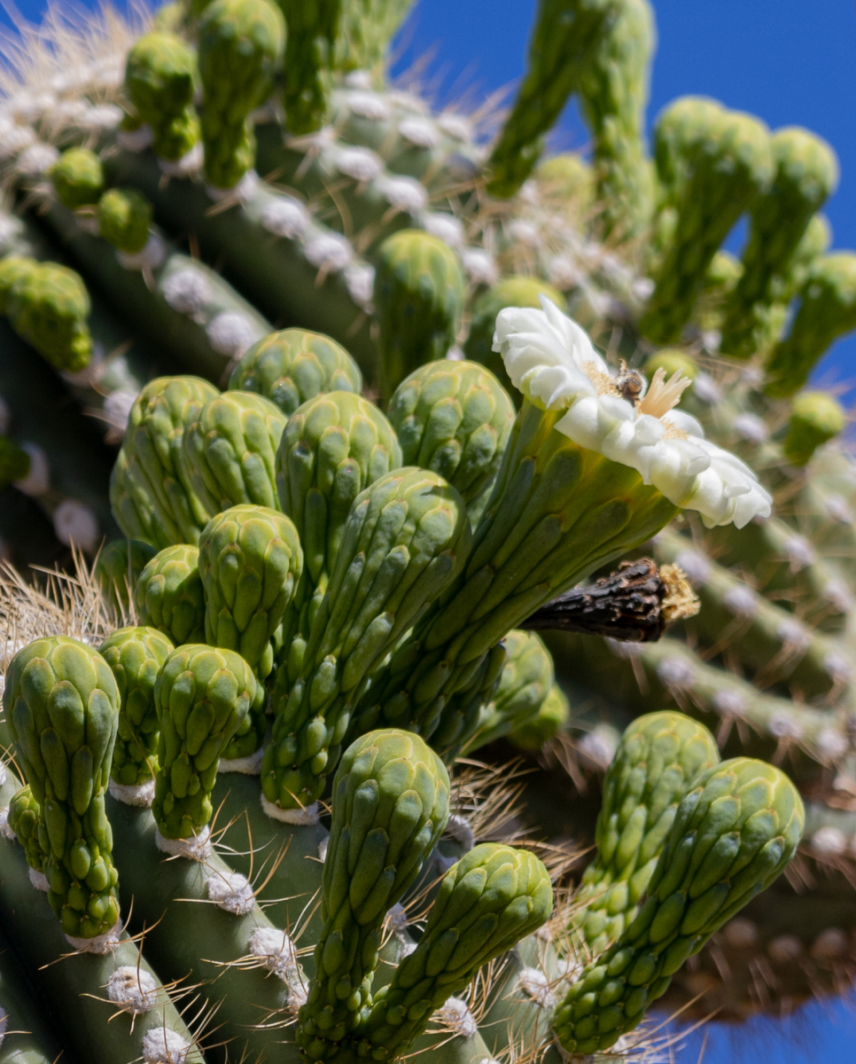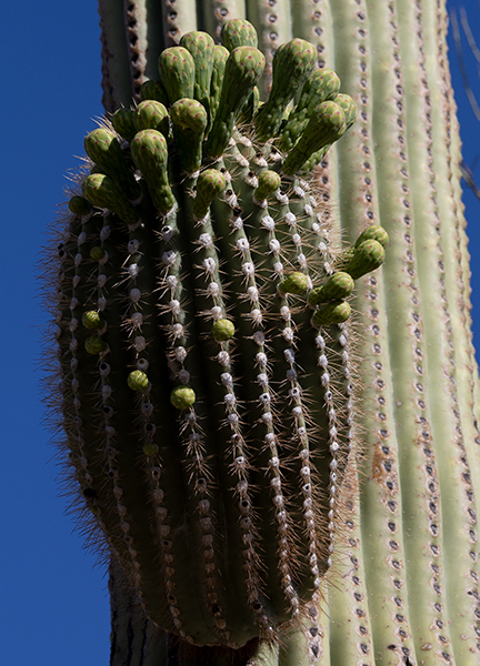 I continued my walk and noticed this Saguaro on the right. The trees and brush that provided protection for it earlier in it’s life became kindling for it’s demise. Old Saguaros as tall as they stand are still vulnerable to the flames fueled by dense dry brush.